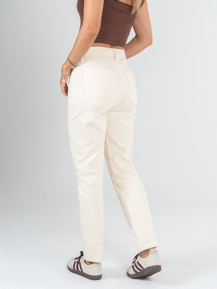 Ref: 0620054 Pantalón mom fit stretch, tiro alto, tono beige.