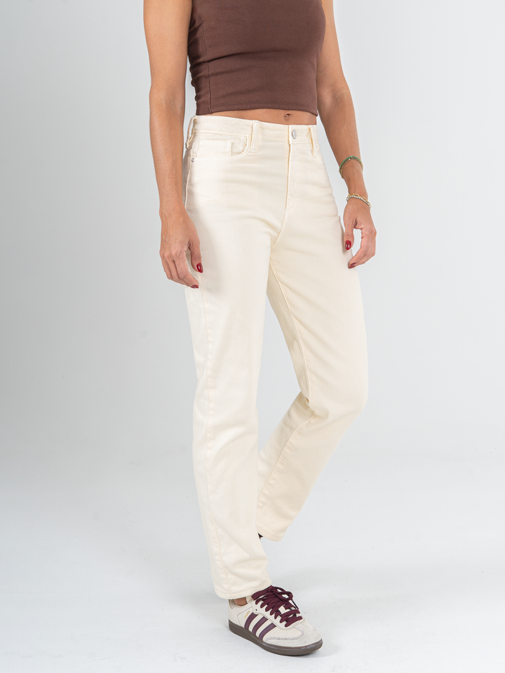 Ref: 069497 Pantalón straight leg, sin prense, tono ivory, tejido plano liviano, tiro alto, detalle en pretina
