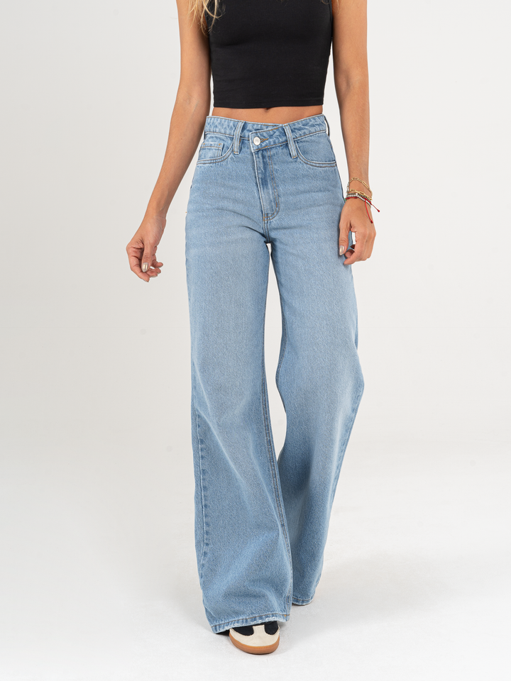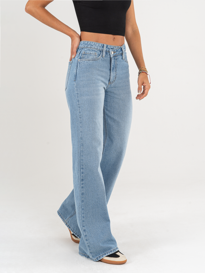 Ref: 065494 Jean palazzo stretch, tiro alto, tono azul medio