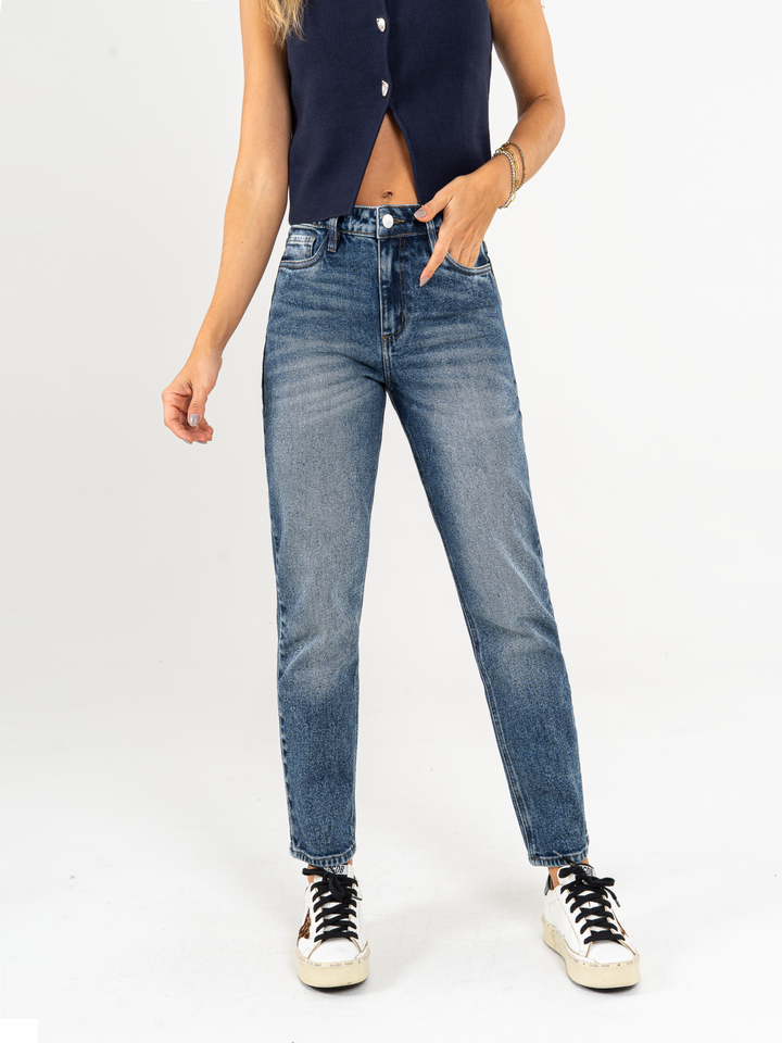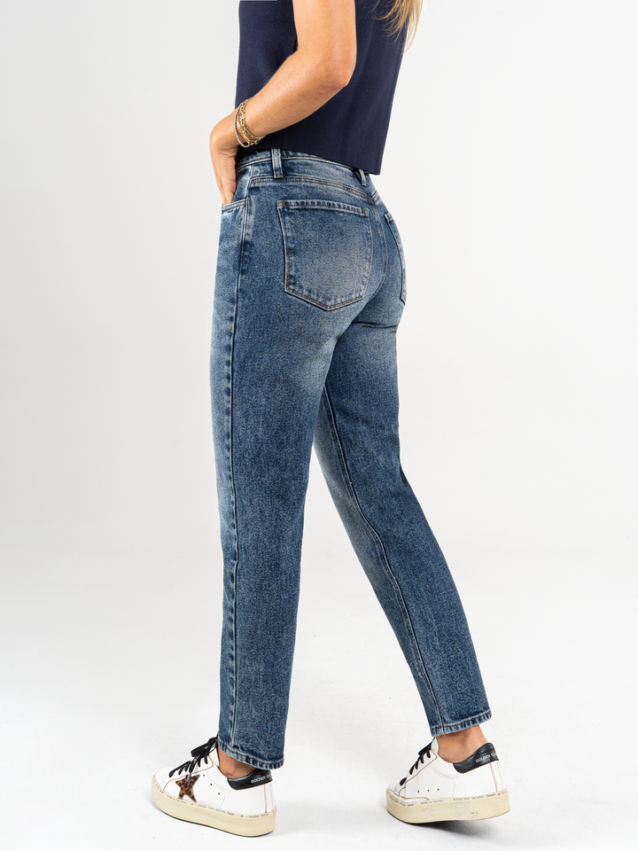 Ref: 065487 Jean Mom fit stretch, tiro alto, tono azul medio oscuro