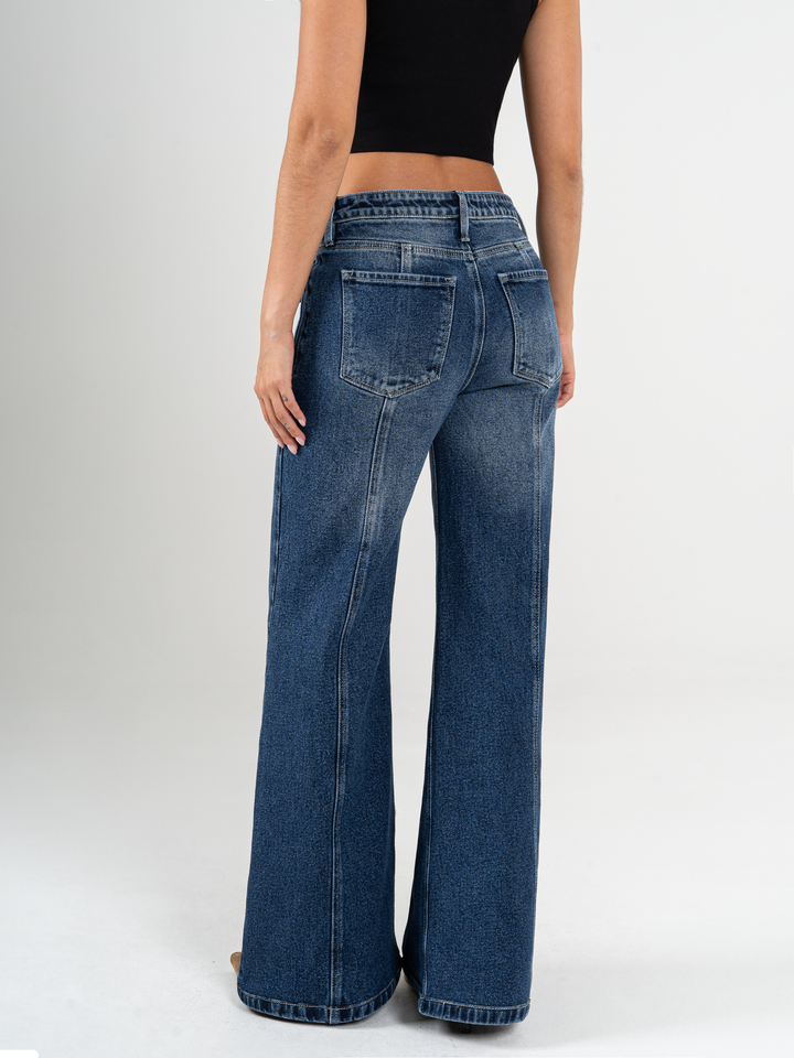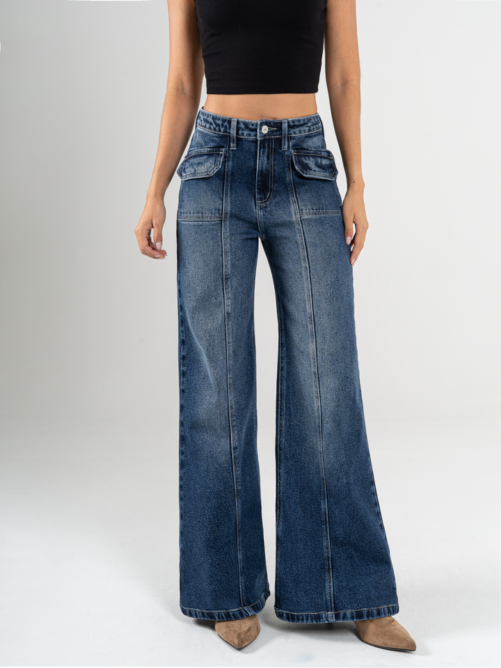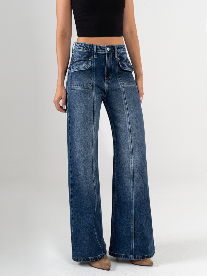 Ref: 065774 Jean palazzo, stretch, bolsillos delanteros, tiro alto, tono azul medio oscuro