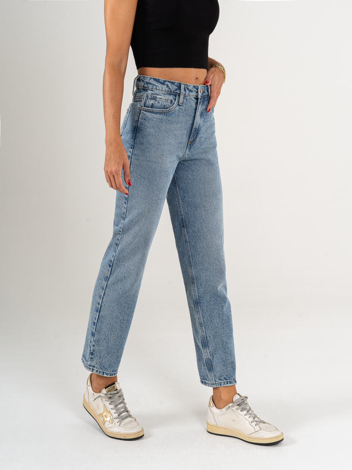 Ref: 065854 Jean Mom fit, rígido, tiro alto, tono azul medio claro