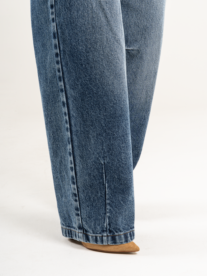 Ref: 065872 Jean wide leg, tiro medio, rígido, tono azul oscuro
