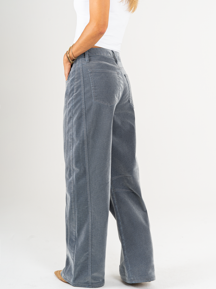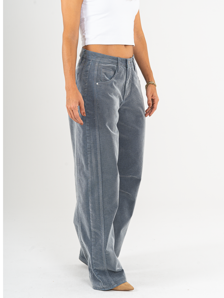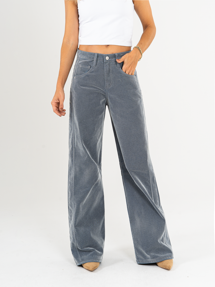 Ref: 065895 Jean wide leg, confort, denim velvet, acabado terciopelo, tiro alto, tono gris