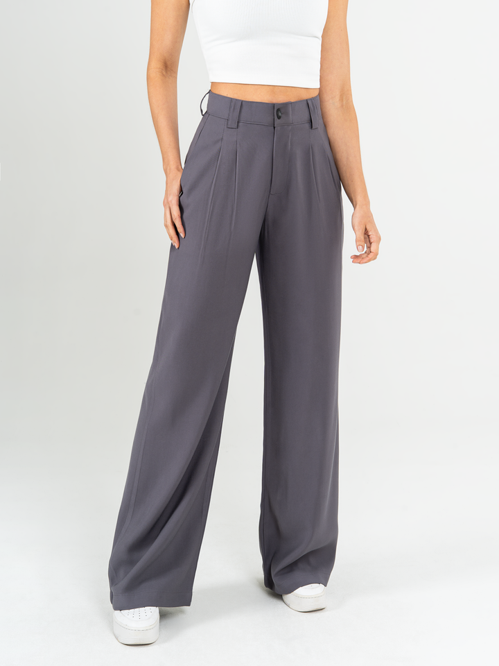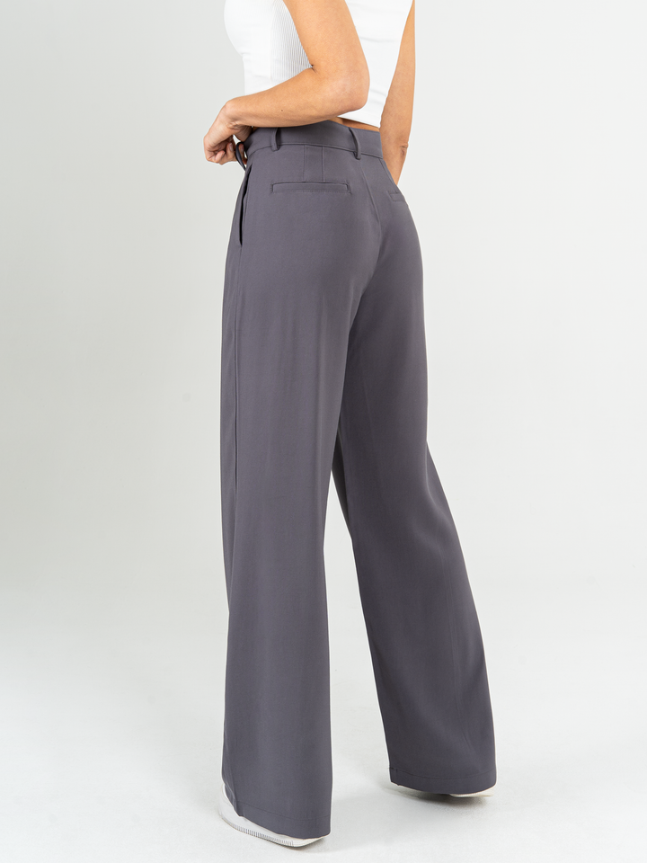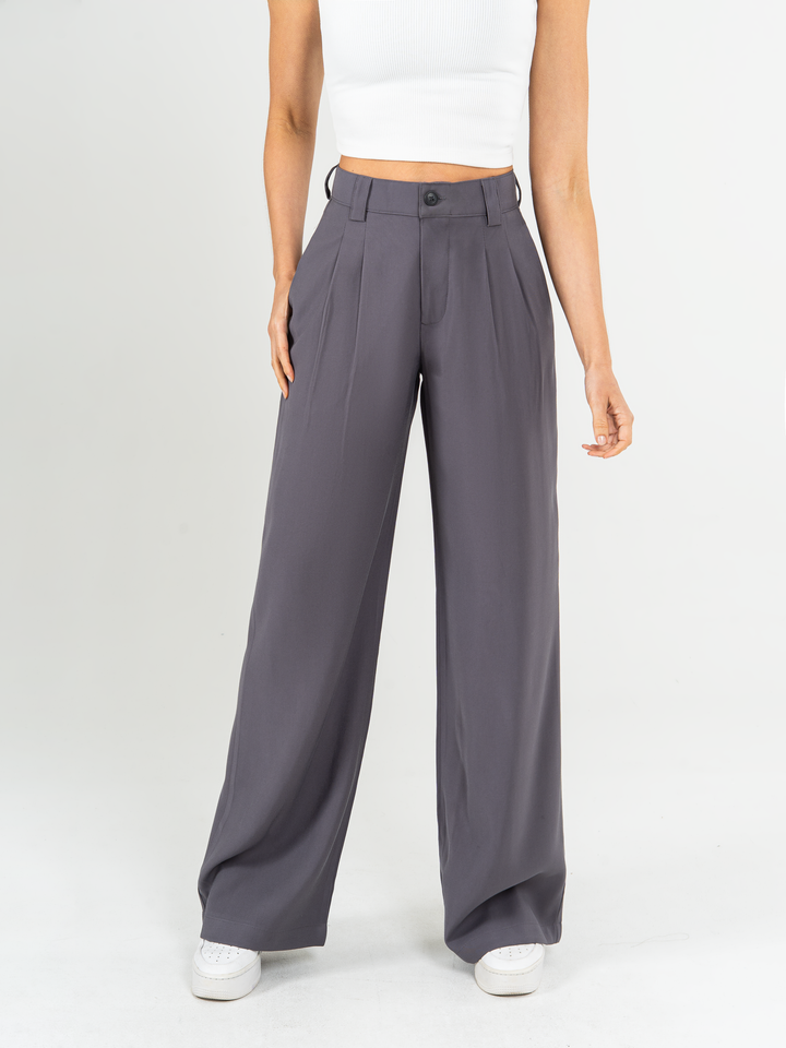 Ref: 069656 Pantalón straight leg, tiro alto, tejido plano liviano, detalle cierres, tono gris oscuro