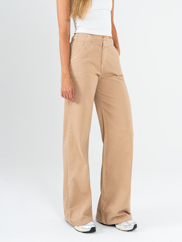 Ref: 069935 Pantalón mom flare palazzo, sin prense, tono natural, tejido plano liviano tipo lino, tiro alto
