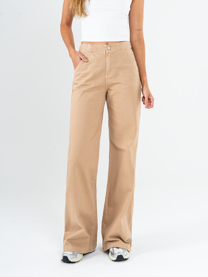 Ref: 069531 Pantalón palazzo, rígido, tiro medio, tono caqui, cintura con elástico.