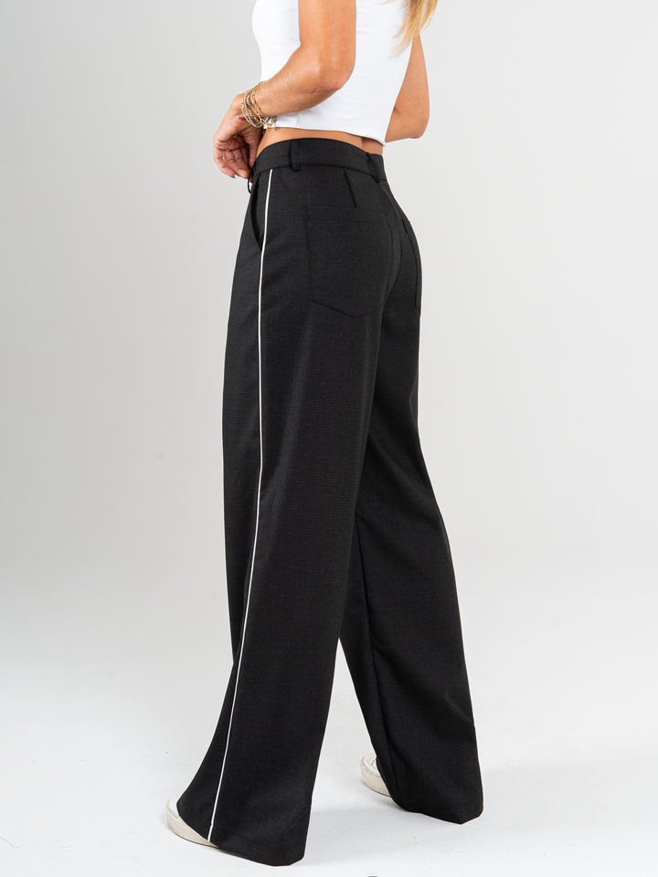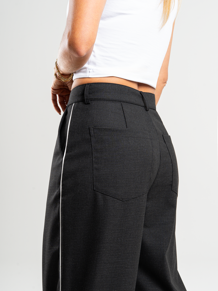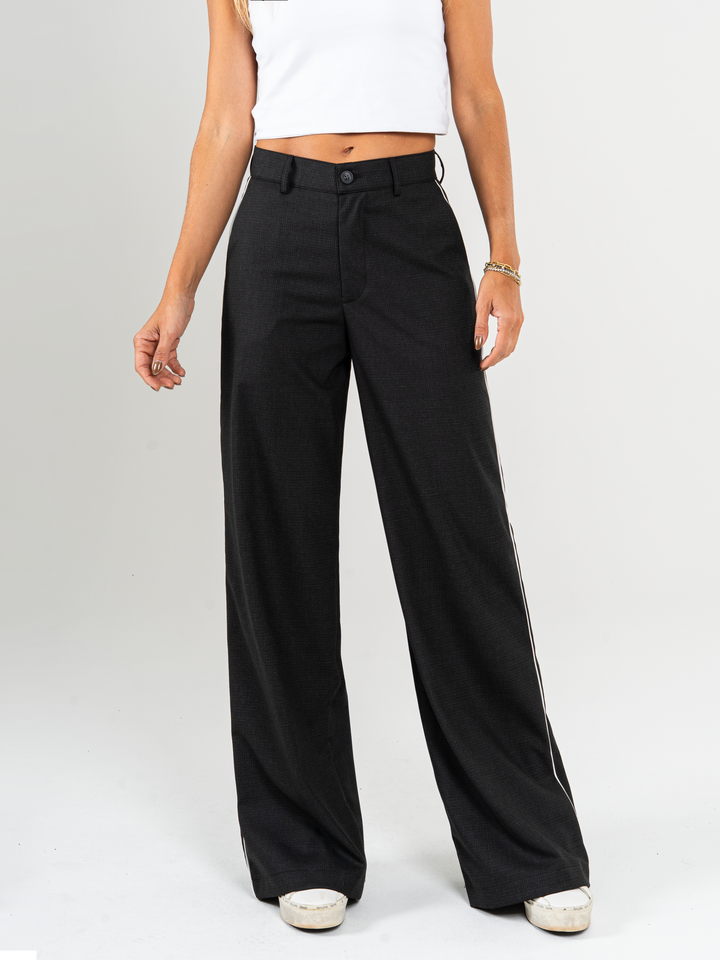 Ref: 069656 Pantalón straight leg, tiro alto, tejido plano liviano, detalle cierres, tono gris oscuro