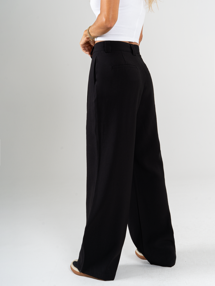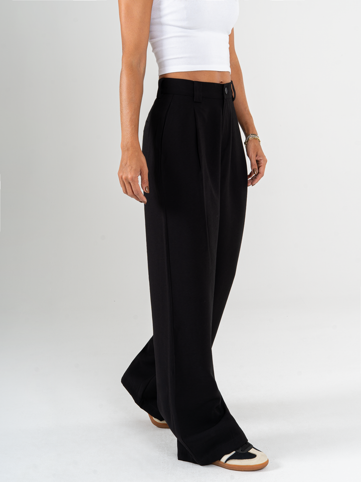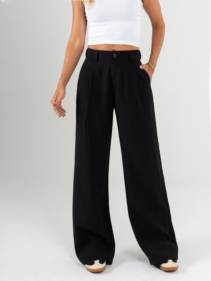 Ref: 069512 Pantalón straight leg, sin prenses,tono negro, tejido liviano tencel