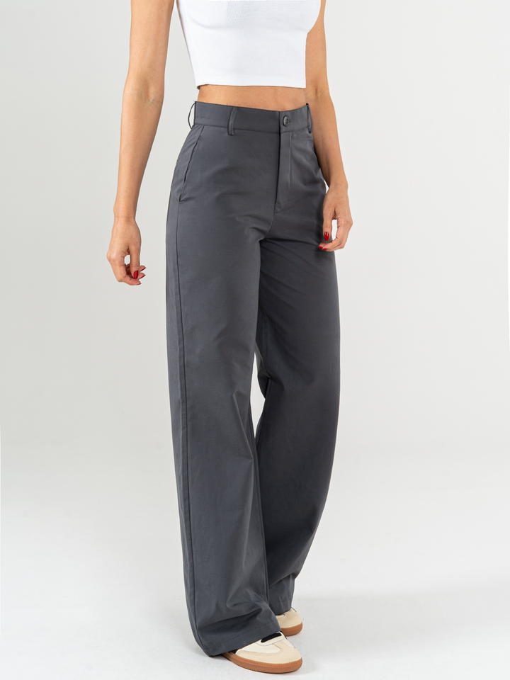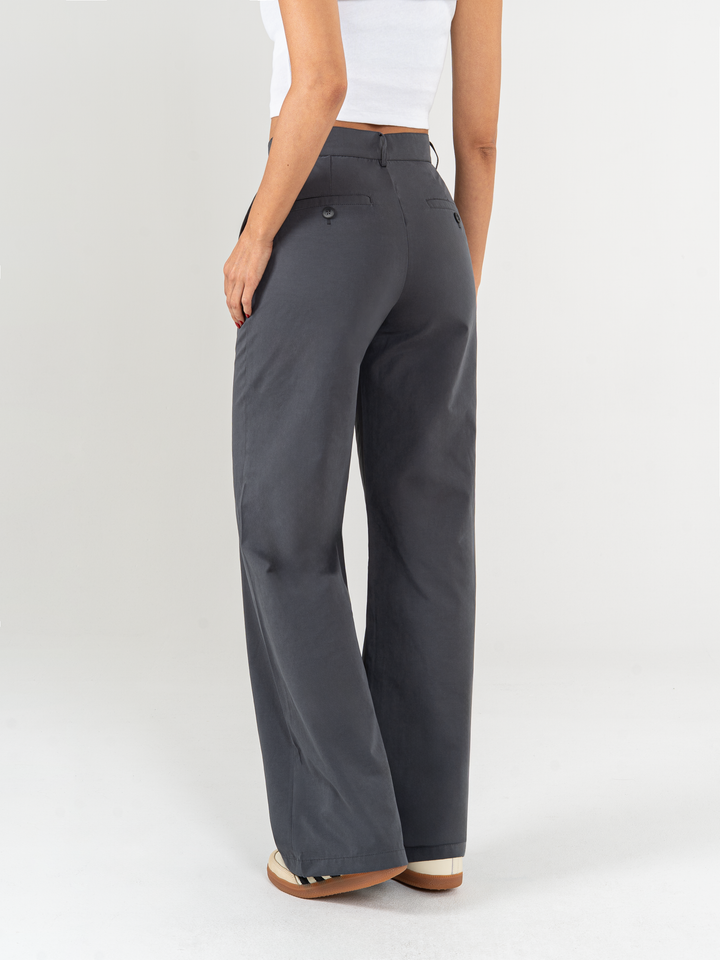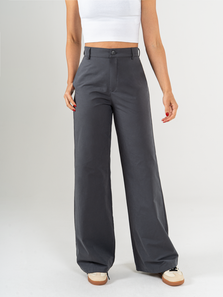 Ref: 069656 Pantalón straight leg, tiro alto, tejido plano liviano, detalle cierres, tono gris oscuro