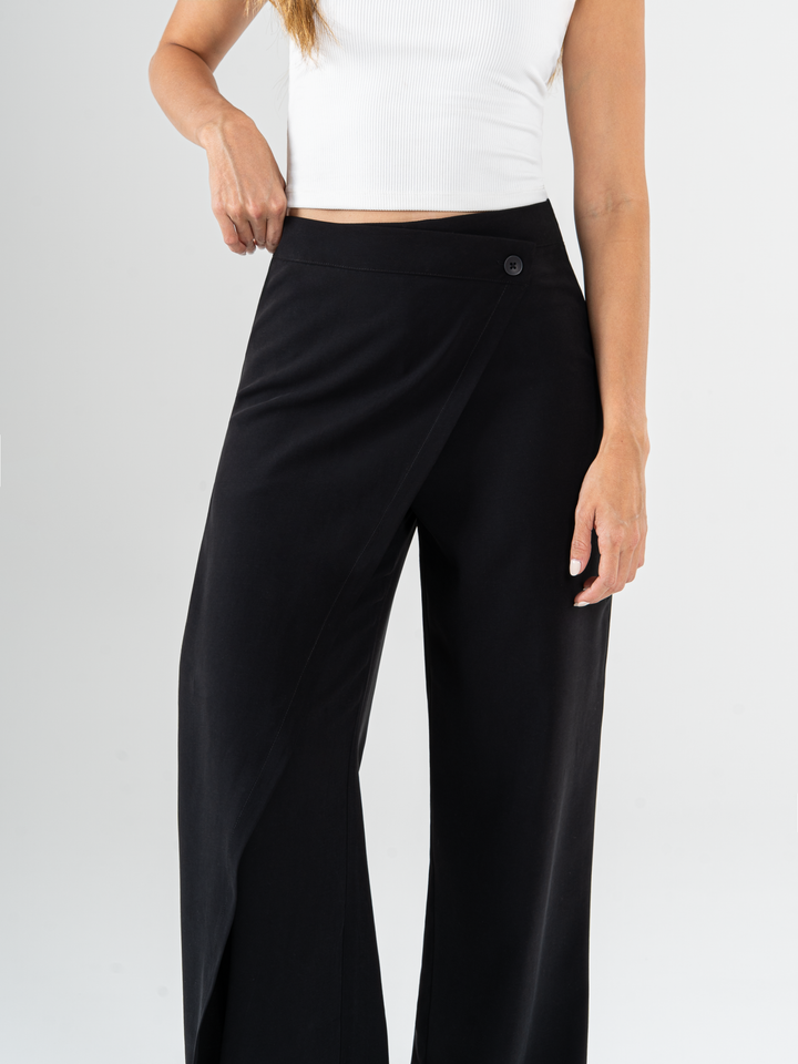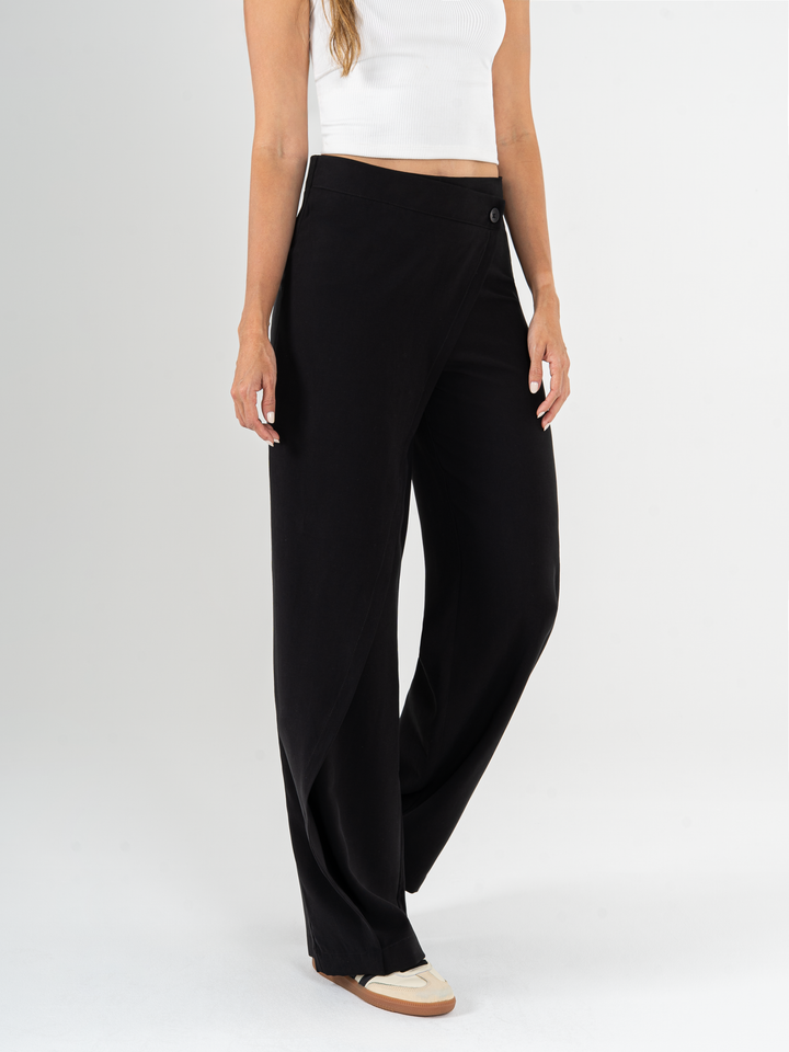 Ref: 069512 Pantalón straight leg, sin prenses,tono negro, tejido liviano tencel