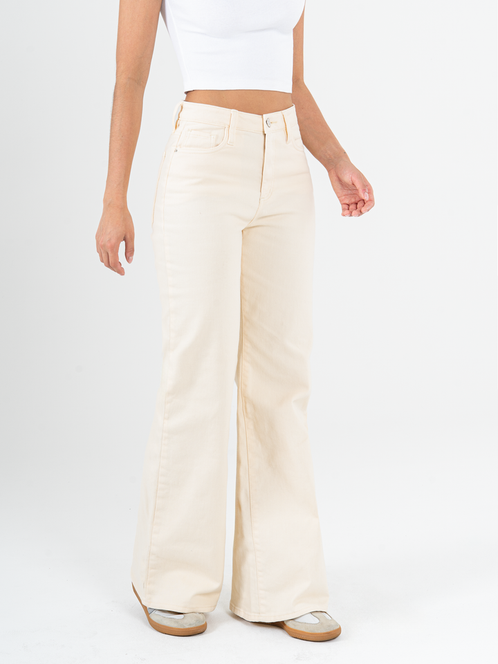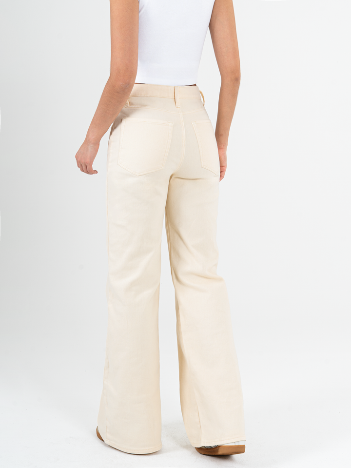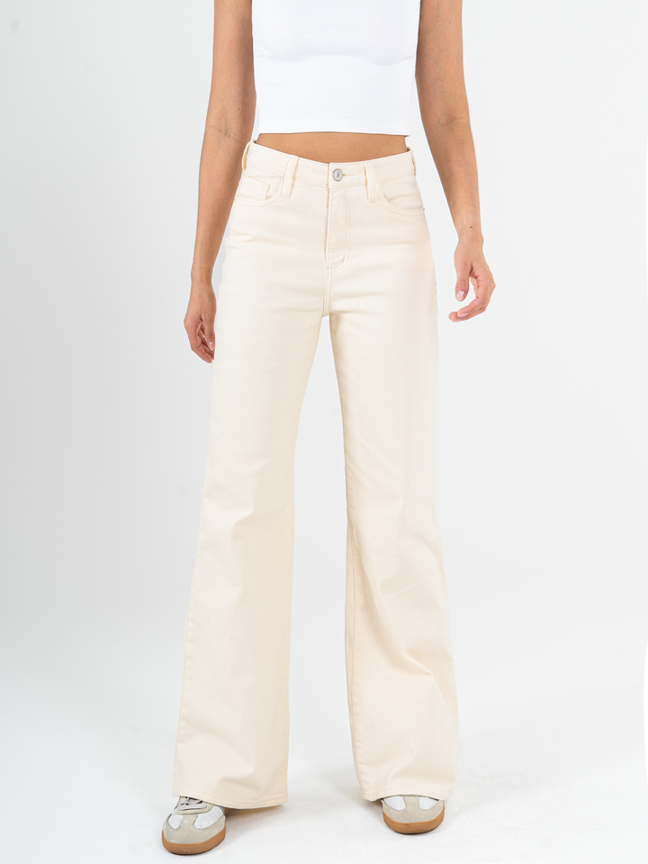 Ref: 069497 Pantalón straight leg, sin prense, tono ivory, tejido plano liviano, tiro alto, detalle en pretina