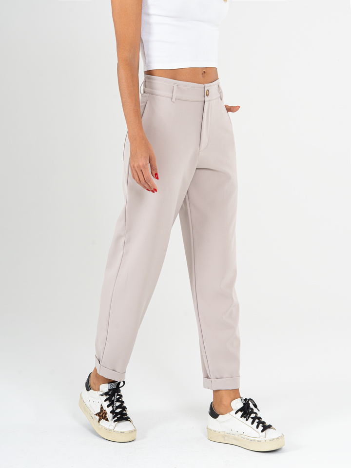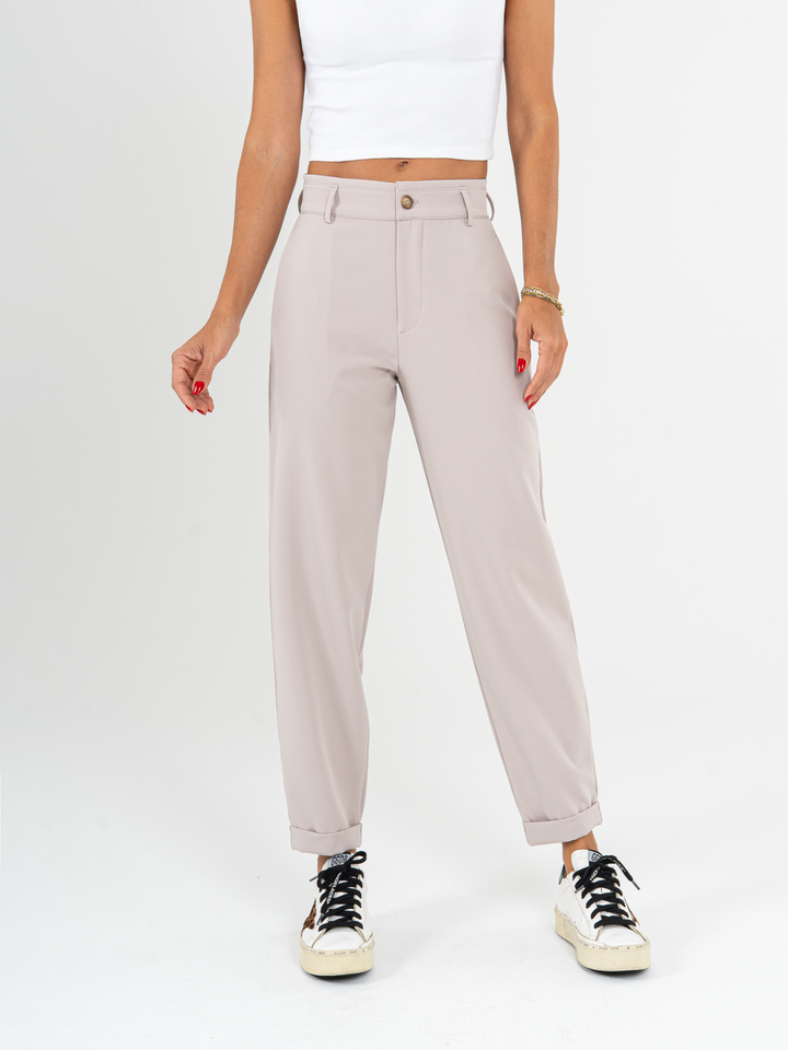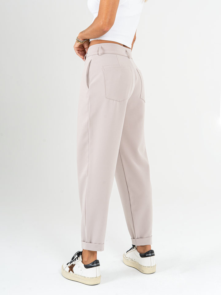 Ref: 069908 Pantalón slouchy, sin prense, tejido plano liviano, stretch, tiro alto, detalle en pretina, tono arena