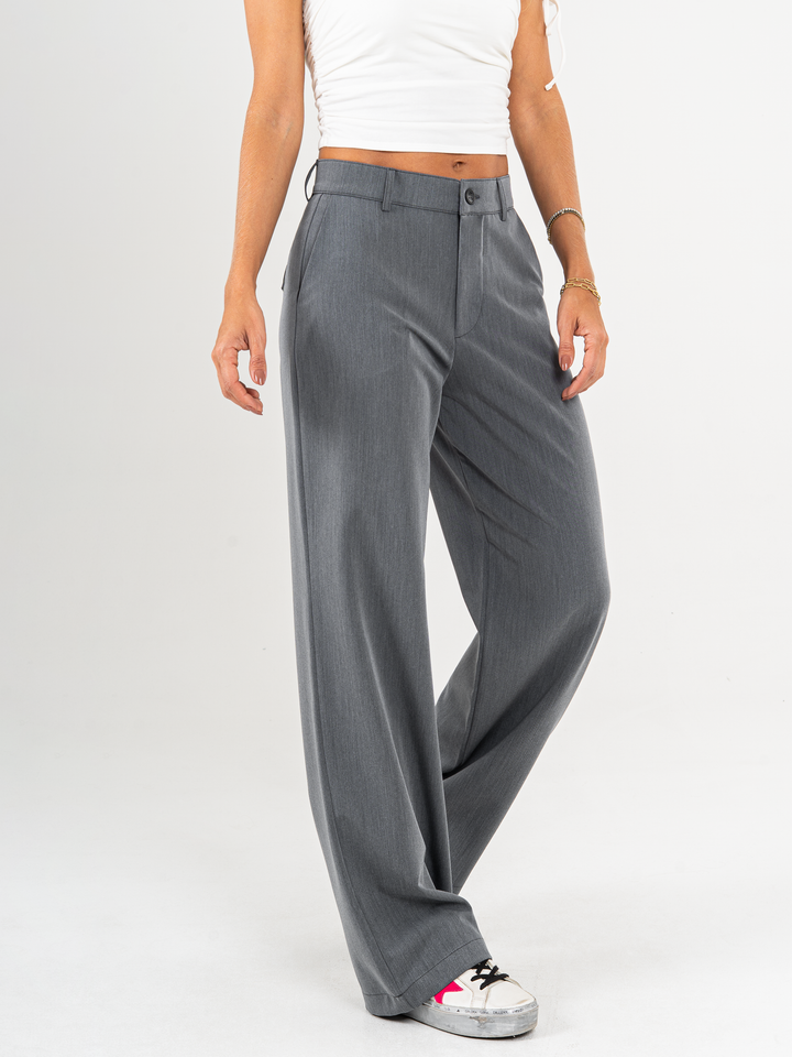 Ref: 069983 Pantalón straight leg, stretch, tono gris, tiro alto